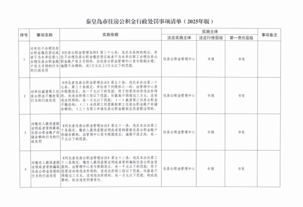 秦皇岛市住房公积金行政处罚事项清单(2025年版)